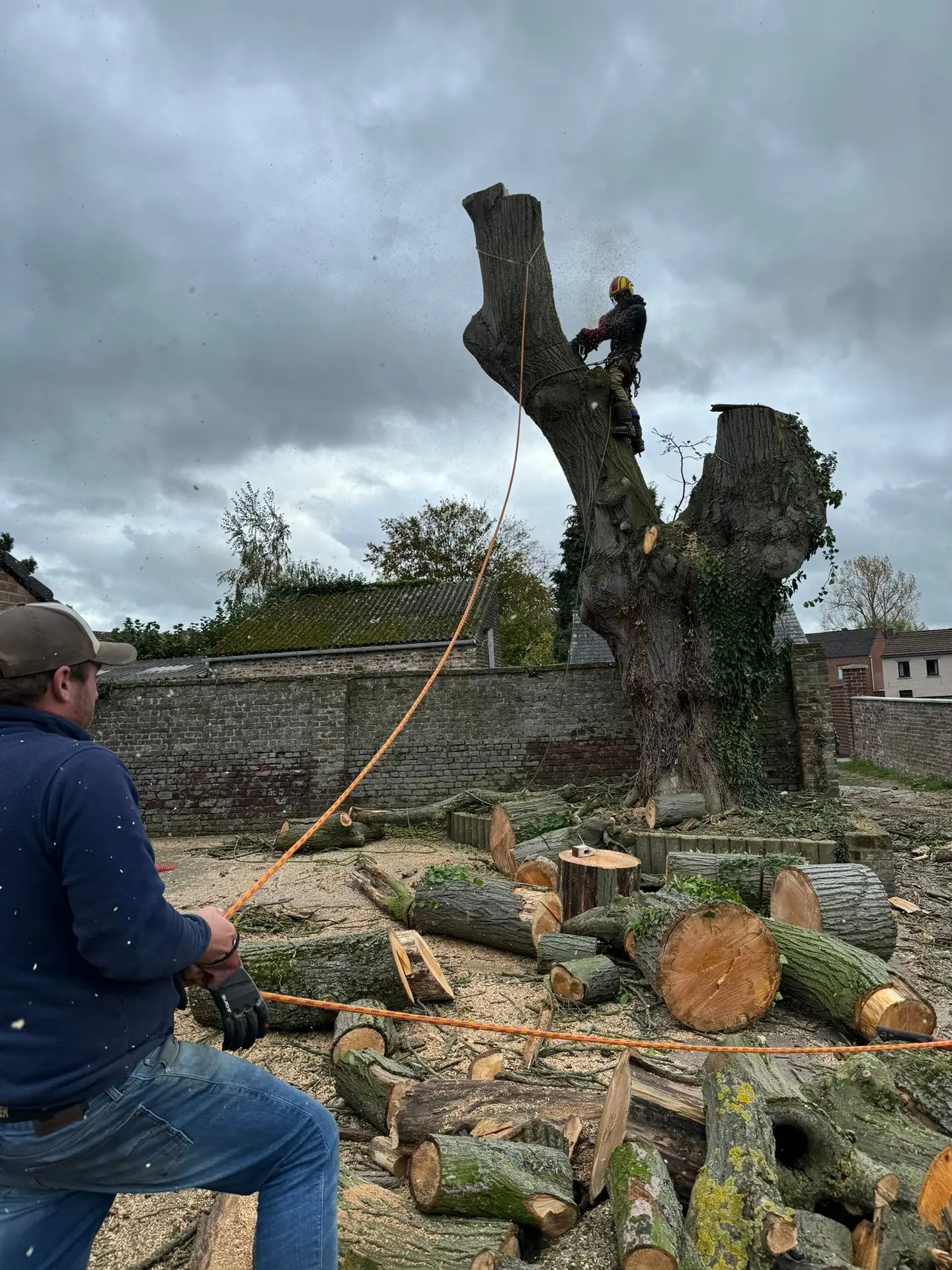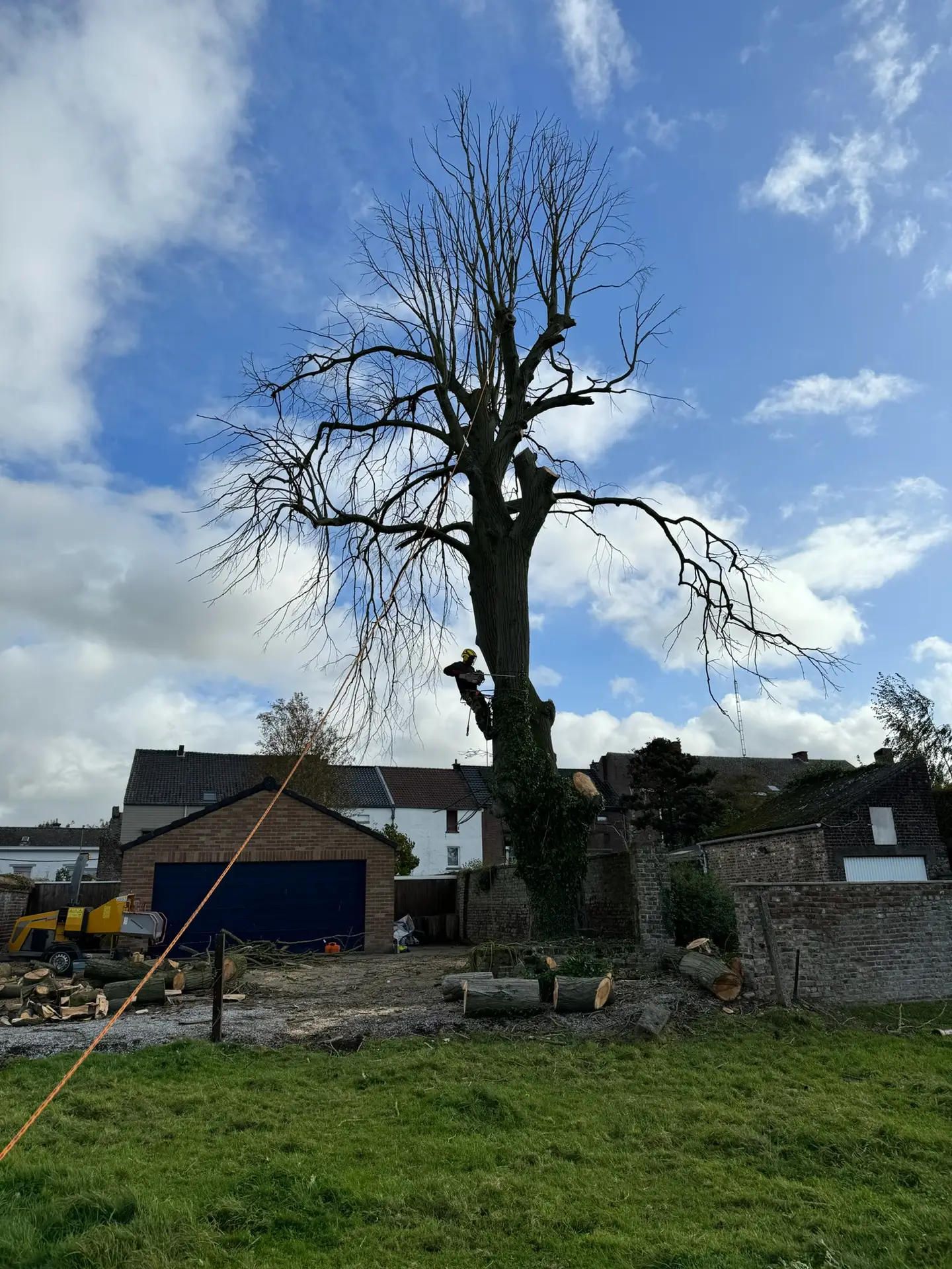 En cas d’abattage, nous procédons de manière sécurisée, par démontage ou en une seule coupe selon l’environnement, en veillant à protéger les infrastructures proches (bâtiments, jardins, voies de circulation). Nos équipes sont équipées de matériel professionnel et certifiées pour les travaux en hauteur.